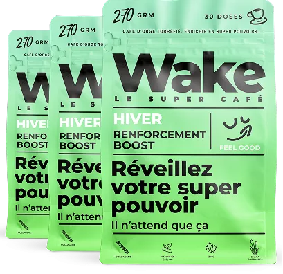 C’est un café fonctionnel. Un vrai café plaisir, mais enrichi en nutriments actifs. Pas besoin de gélules, pas besoin de poudres compliquées : Wake s’intègre simplement à votre routine du matin, avec la certitude d’apporter tout ce dont votre corps a besoin pour bien démarrer.